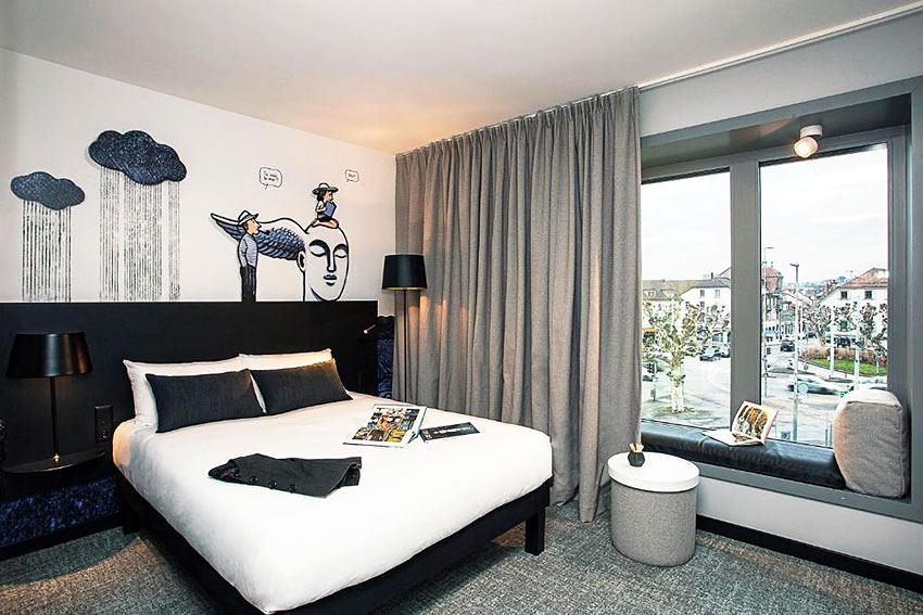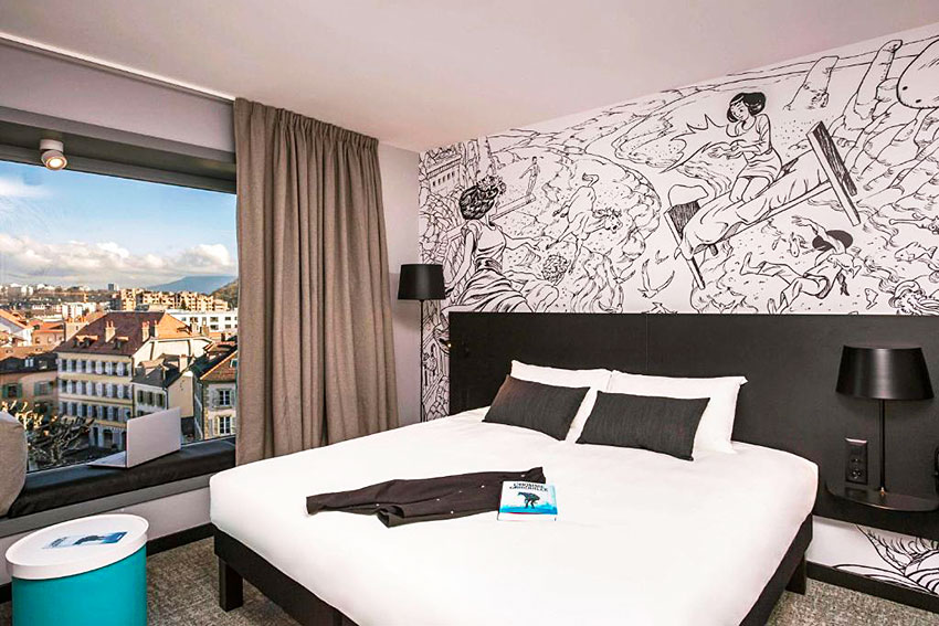 Es genügt, die Brücke über die Arve zu überqueren, um Ihr Gepäck in Carouge abzustellen, und schon bietet Ihnen das Ibis Styles Genève Carouge eine ganz eigene Art von Flucht: ein künstlerisches, fantasievolles und unerwartetes Eintauchen. Nur wenige Minuten vom Zentrum Genfs entfernt, überrascht dieser Ort mit seiner Fähigkeit, zeitgenössische Gastfreundschaft mit der Welt der Träume in Einklang zu bringen, mit der 9. Kunst als Kulisse in all ihrer Vielfalt.