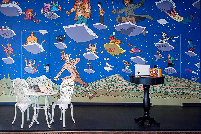 Hier werden Sie übernachten, als ob Sie ein offenes Buch betreten, bereit, die Seite umzublättern und noch ein wenig zu träumen, inmitten eines nur für Sie gezeichneten Comic-Panels.