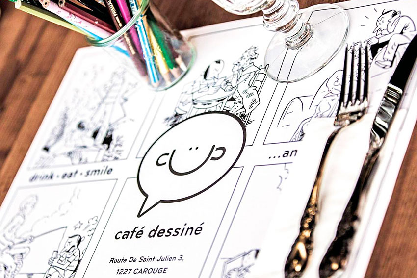 Schon beim Betreten werden Sie von einem monumentalen Fresko, Originalzeichnungen und zarten Anspielungen auf Rodolphe Töpffer, den Vater des europäischen Comics, empfangen, dessen amüsiertes Lächeln scheinbar immer über den Ort wacht.