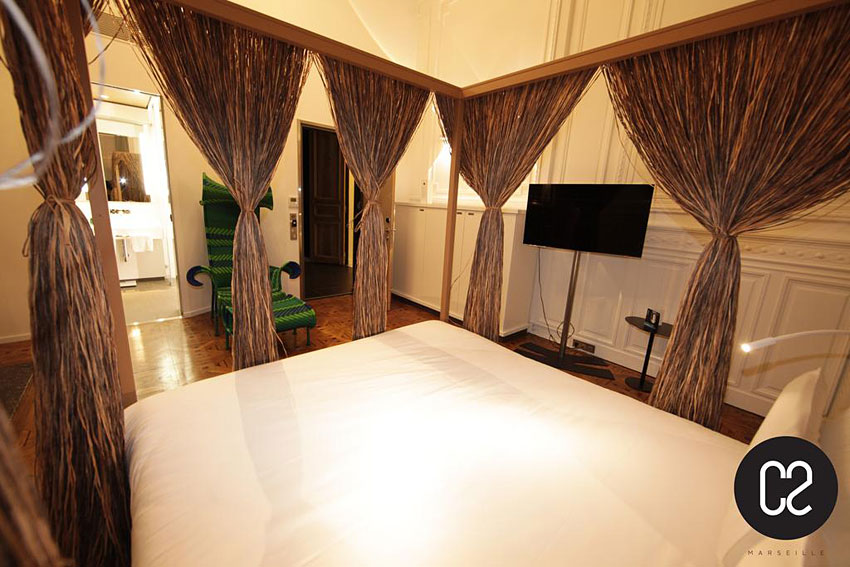 For the 20 bright and spacious rooms, the two founders and architects Claire Fatosme and Christian Lefèvre (the 2C) have also selected artists, designers, and publishers from the 20th and 21st centuries. We are especially charmed by the 4th floor and its two rooms extended by a balcony and a breathtaking view of the city's symbol, Notre-Dame de la Garde.