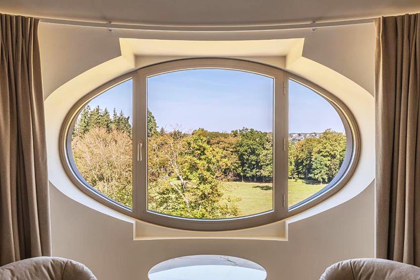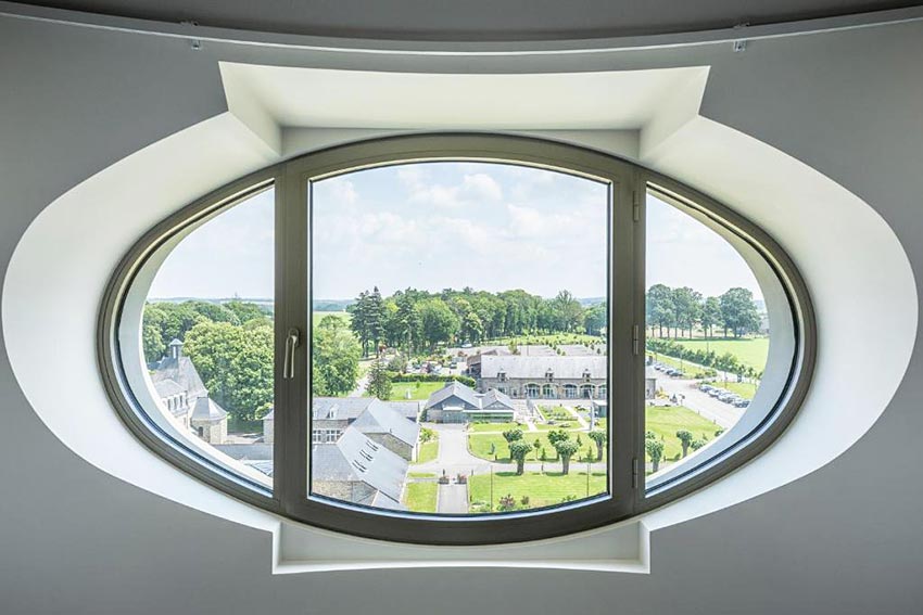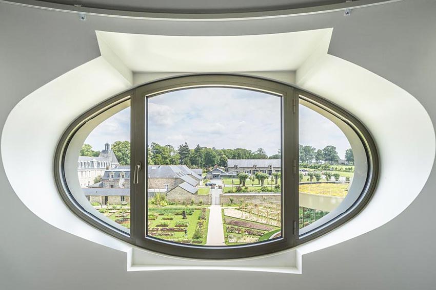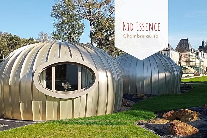 Essen'Ciel et Spa is not just a hotel. It is an architectural response to a universal need: to retreat, to rise. Inspired by the structure of a tree and designed by l'Agence Unité, the central building stands in the vegetable garden of the Château des Pères, a 31-hectare artistic and botanical estate. Its spiral walkways lead to the suspended rooms, vast cocoons adorned with light wood and sky-inspired colors. Here, everything encourages contemplation. You view the landscape as if through a lens, from a giant oculus framing the edges, meadows, or the discreet silhouette of the neighboring château.
