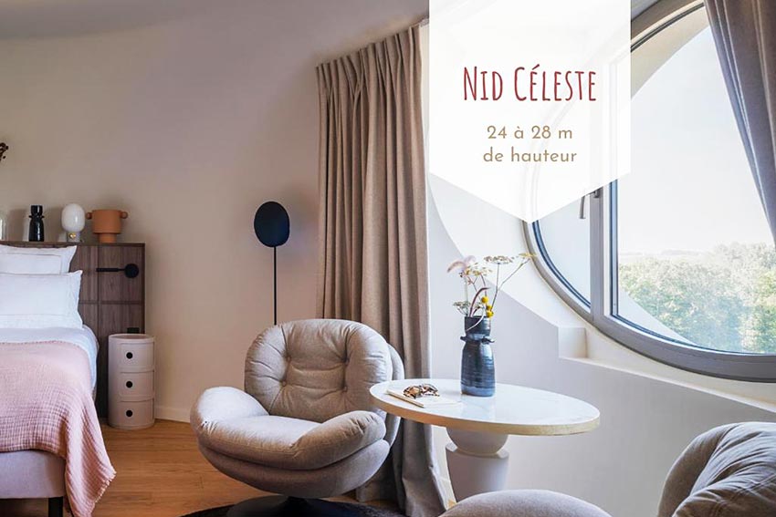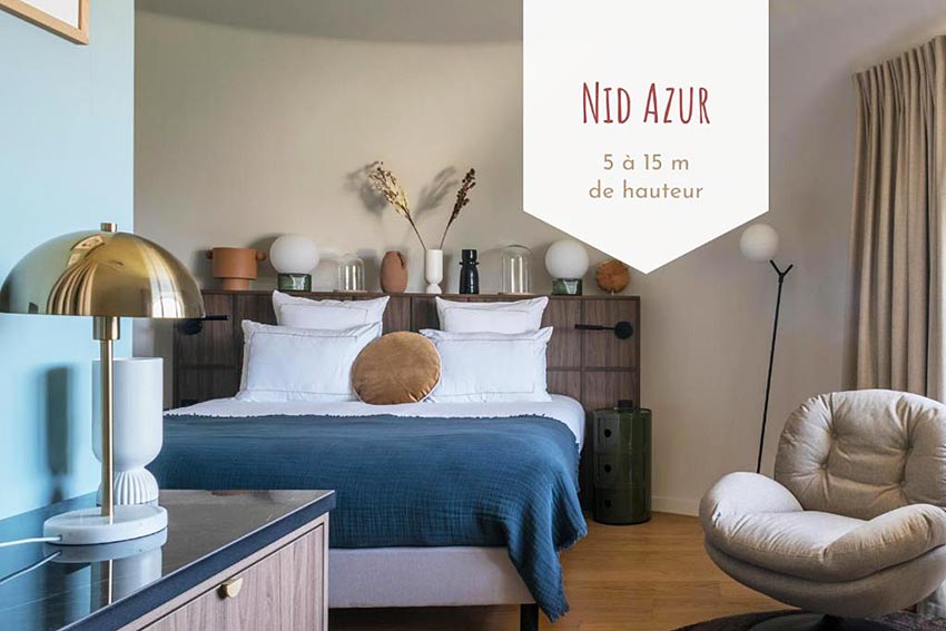 ⊱ Rooms Le Nid Azur (26m2, twin or double beds) to truly take flight between 5 and 15 meters in height, from €165
