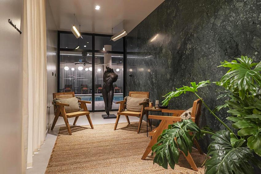 Below, the 300 m2 spa extends the sensory journey. The scents of mint and tea accompany you between the hydrotherapy pool, sauna, hammam with essential oils, and body treatments by Thémaé. The atmosphere is intimate, almost dreamlike. Water soothes, spaces calm, and treatments become a slow celebration of the present.