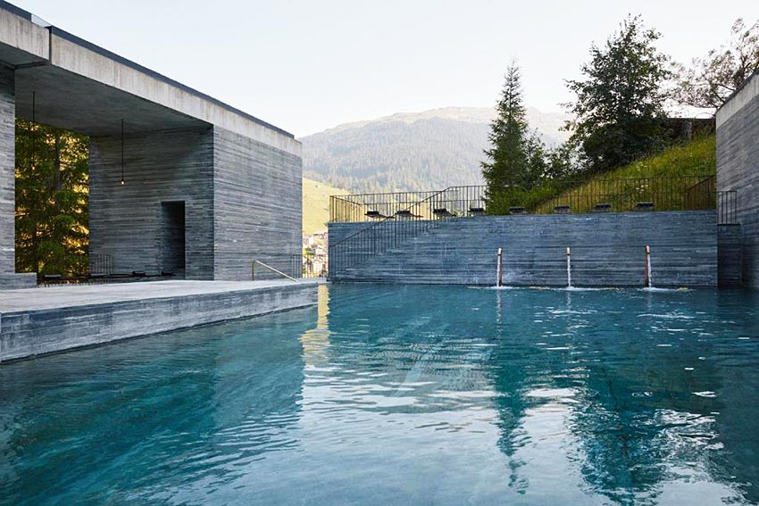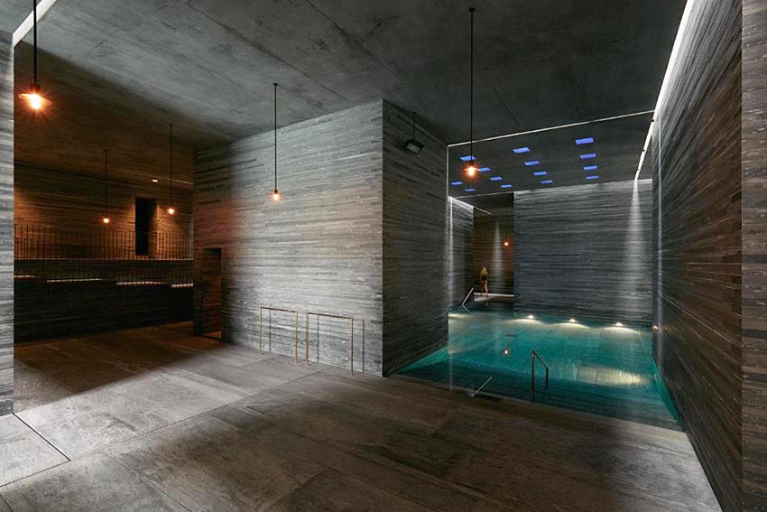 Diseñados entre 1993 y 1996, estos baños son obra del arquitecto suizo Peter Zumthor (laureado con el Premio Pritzker 2009). Este impresionante bloque de hormigón en bruto tiene una historia bastante sorprendente. En los años 60, un promotor alemán, cautivado por el majestuoso entorno y la fama de la fuente termal de la comuna, construyó un gran complejo hotelero. En 1986, la comuna decidió comprar todo el complejo y crear unos baños termales. Una comisión del pueblo, compuesta por habitantes de perfiles variados, tomó entonces dos decisiones audaces: endeudar a la comuna por un monto de 100 millones de francos y confiar el proyecto a un arquitecto aún poco conocido, Peter Zumthor.