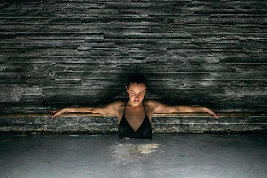 Así, este spa esculpido en piedra parece haber surgido de la propia montaña con sus 60.000 losas de cuarcita local, directamente conectado a la fuente de agua naturalmente a 30°C, rica en magnesio y calcio. Uno se pierde en este laberinto como en una cueva secreta, entre muros de cuarcita, luz filtrada y piscinas sensoriales con temperaturas variadas. Calidez envolvente, frescura vigorizante, discretos hammams… cada espacio ofrece un momento único. Y cuando cae la noche, el silencio se apodera de todo, amplificando aún más la experiencia.