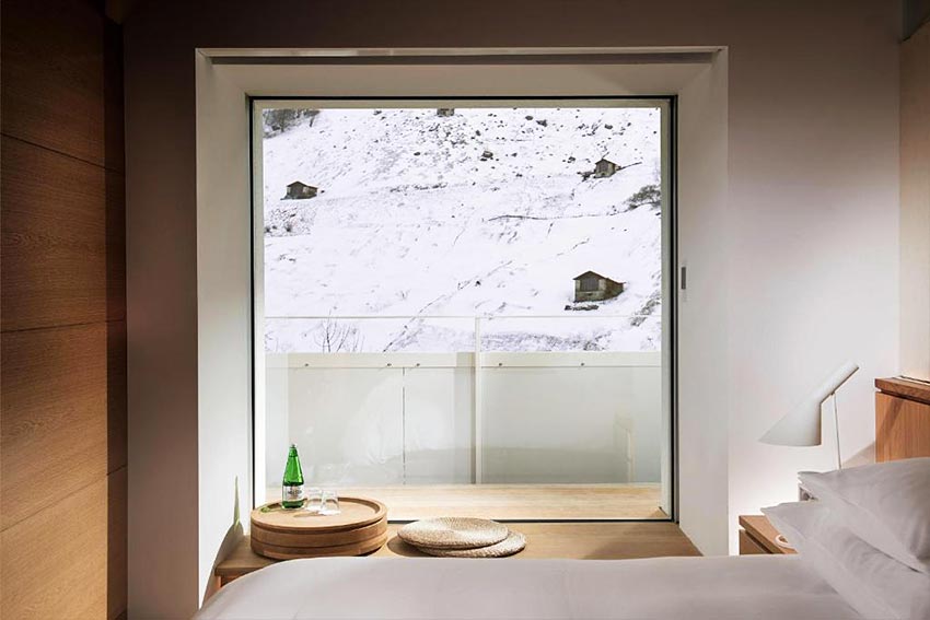 Para prolongar esta inmersión, el 7132 Hotel le da la bienvenida. Hay dos opciones: el refinamiento absoluto del cinco estrellas, con suites diseñadas por el japonés Kengo Kuma, o bien la atmósfera conceptual del 7132 House of Architects, un establecimiento de cuatro estrellas donde cada habitación ha sido concebida por un gran nombre del diseño contemporáneo. Peter Zumthor, Tadao Ando, Kengo Kuma y Thom Mayne ofrecen cada uno una experiencia sensorial singular. A través de los grandes ventanales de las 73 habitaciones (20m2), el paisaje se convierte en una obra de arte, y la luz alpina esculpe los volúmenes a cada hora del día.