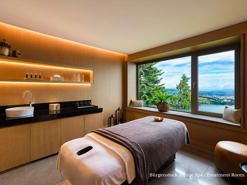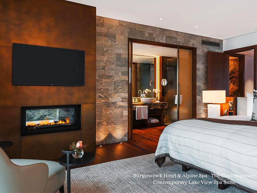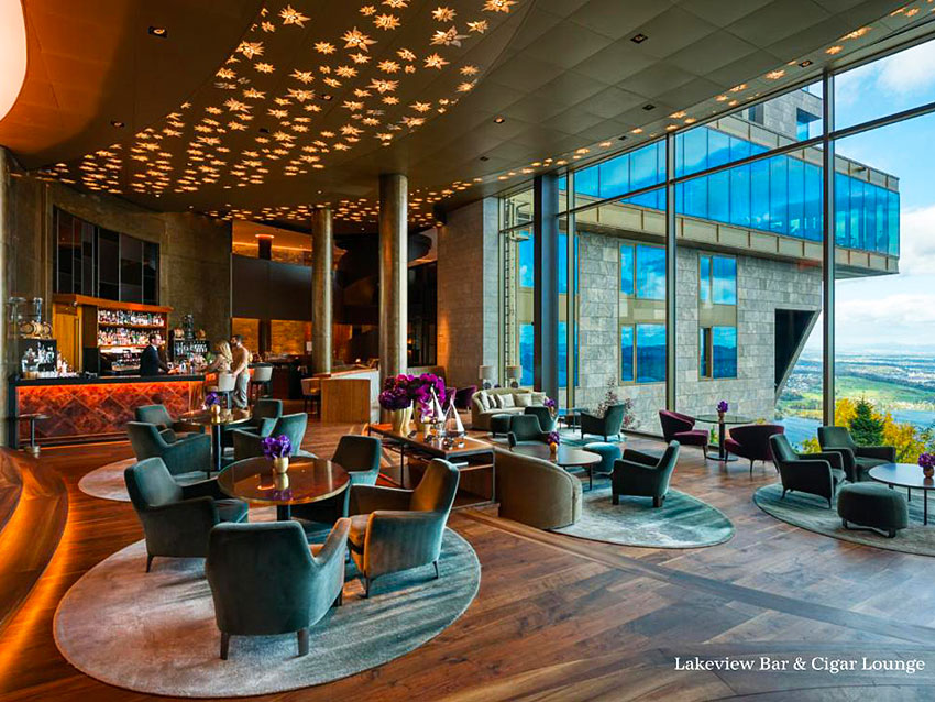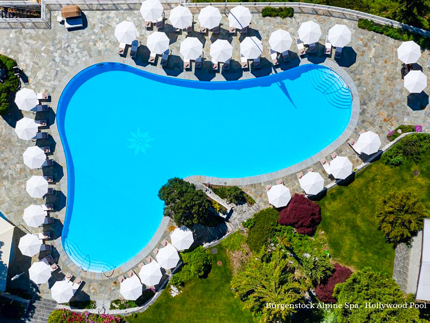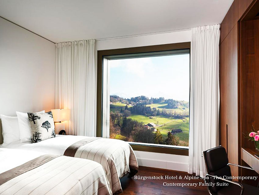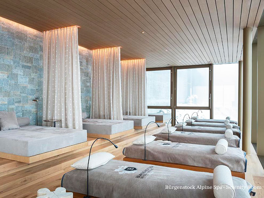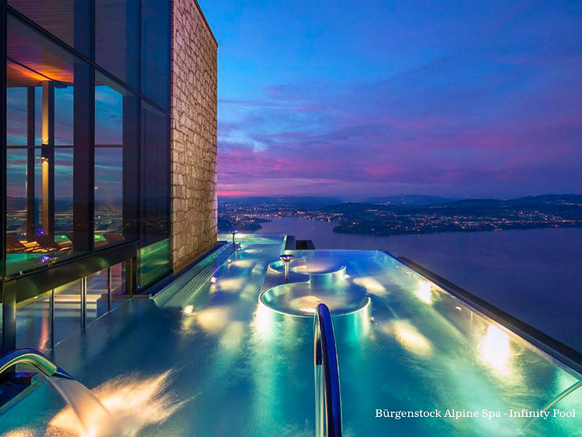 Alojándote en el Bürgenstock Hotel & Alpine Spa, accedes a más que un hotel excepcional: un vasto complejo sin coches, un spa de 10,000 metros cuadrados, 12 restaurantes (cocinas francesa, asiática, libanesa, italiana, suiza), bares y salones, numerosas boutiques, 3 canchas de tenis y un campo de golf de 9 hoyos.