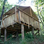 Posées sur des plateformes-pilotis qui épousent le relief de la forêt bien boisée, les tentes en toile se fondent dans la nature. On est au calme, espacés les uns des autres, on profite en toute intimité de sa terrasse et de son espace. Mobilier en bois, véritables lits en 160 cm (et linge de lit), cuisine, salle de bain et toilettes, il y a même un poêle à bois.