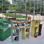 Au cœur du glamping, deux serres de verre abritent les services offerts aux hôtes. Espace accueil, bibliothèque au coin du poêle, bar et sanitaires. Des sanitaires pensés aussi pour nos enfants, lavabos, toilettes et même une douche double à hauteur d'enfant, pratique pour se doucher en même temps que les parents. Ici, les enfants sont vraiment gâtés car en juillet et en août ils apprennent la nature en s'amusant (10h-12h). Merci pour toutes ces bonnes idées !