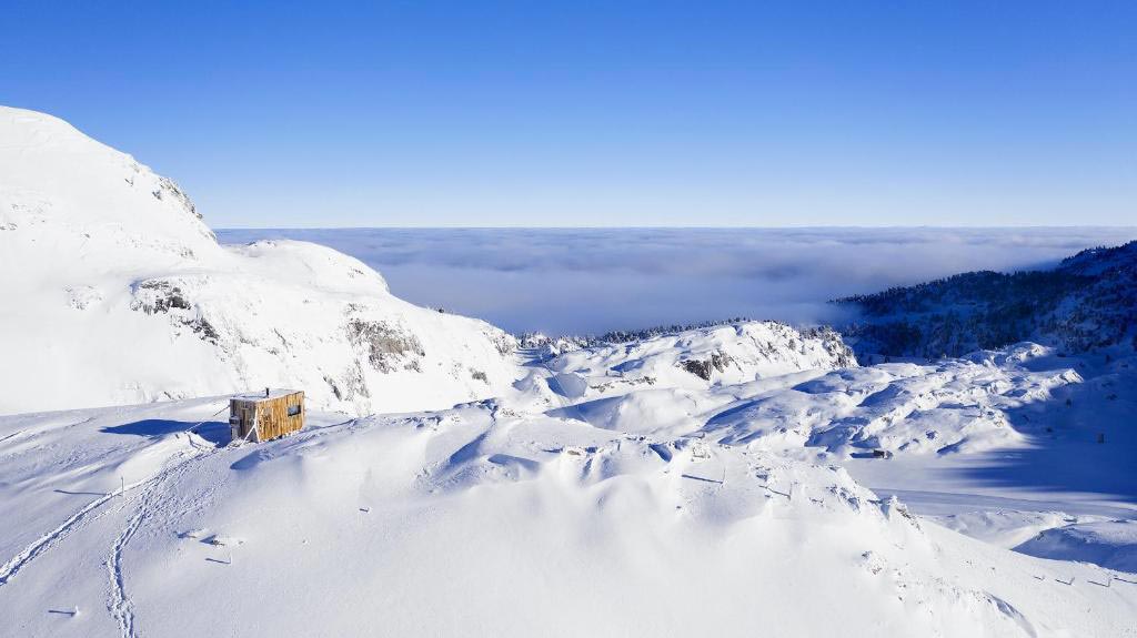 Atipic Lodge ti aspetta per una notte in vetta in un nido di legno riscaldato da una stufa. La montagna sobria, intima, risolutamente selvaggia, come piace a tutti gli appassionati.