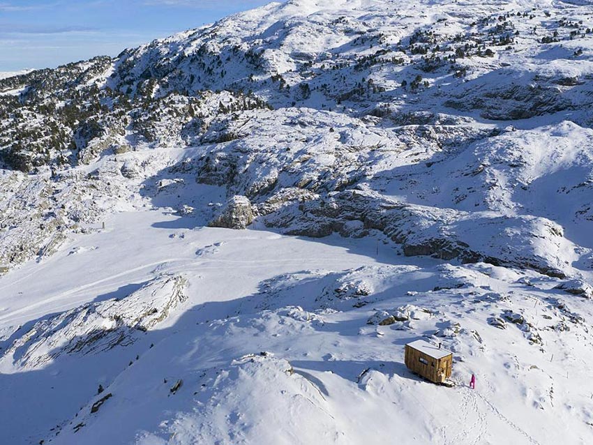 L'arrivo con gli sci o in motoslitta dà il tono. Si lascia la stazione di La Pierre Saint-Martin alle spalle e si sale fino all'altopiano del Pescamou. Il paesaggio diventa più rude, più silenzioso. Di fronte al più grande campo di lapiaz d'Europa, il tuo lodge dalle linee pulite ti aspetta: interamente pensato e realizzato a mano con materiali locali.