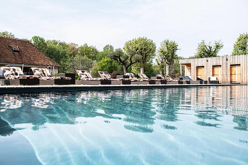 Côté food, la surprise continue : Ardent, le restaurant du domaine, mise sur la flamme, les légumes du potager et les cueillettes forestières. Il y a aussi un bar pour grignoter et un bistronomique éphémère aux beaux jours. Le tout dans une longère XIXe, au charme fou. La piscine de 20 mètres, posée au cœur des pins, complète l’équation.