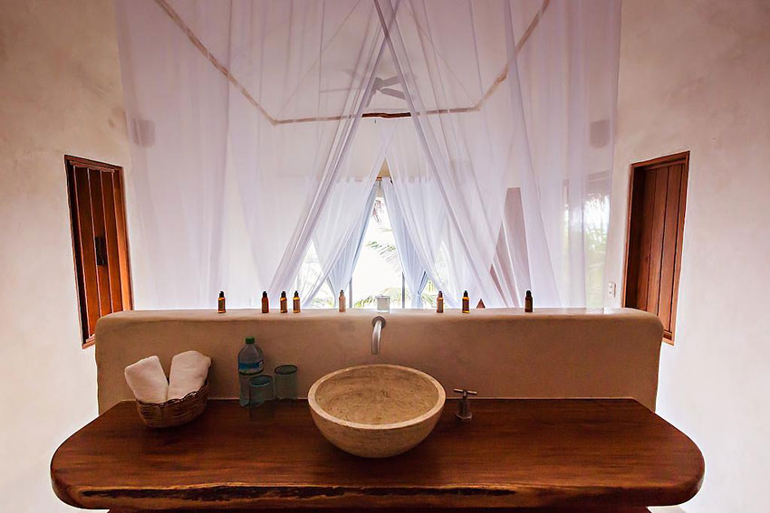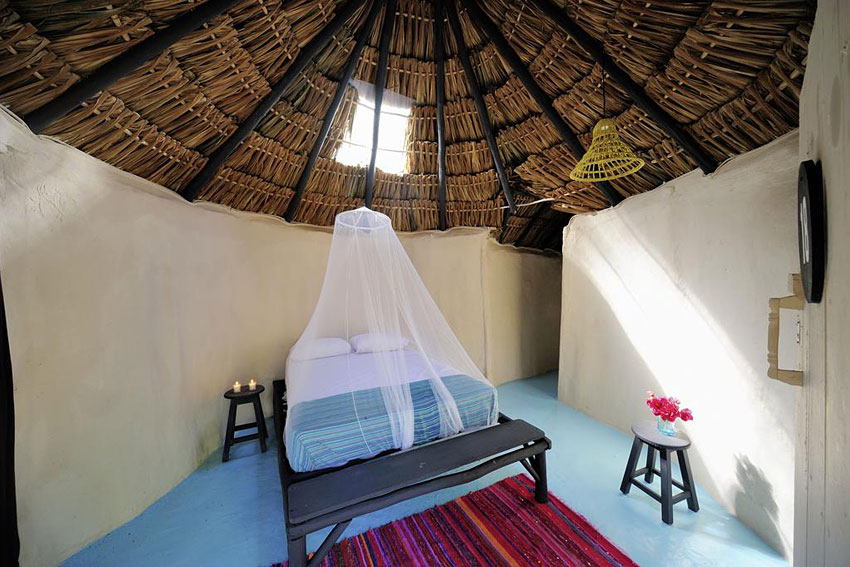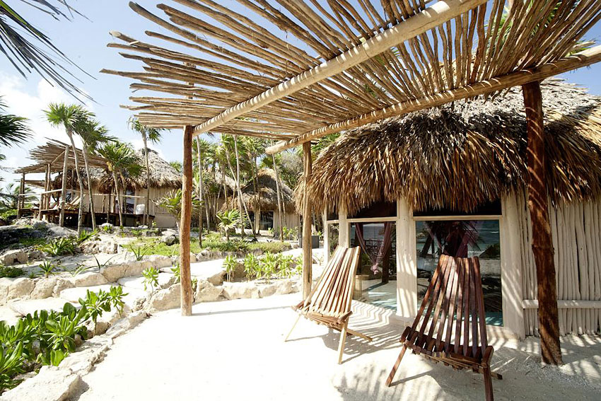 A Tulum au Mexique (péninsule du Yucatan), l'hôtel Papaya Playa Project -PPP-, est bordé par une immense plage de sable et les eaux limpides de la mer des Caraïbes. Sur la corniche rocheuse, des artisans locaux ont construit des cabañas, petits bungalows conçus avec des matériaux locaux, toits de chaume, bois et bambou. De charmantes cabanes aussi simples que la vue sur la mer turquoise est splendide.